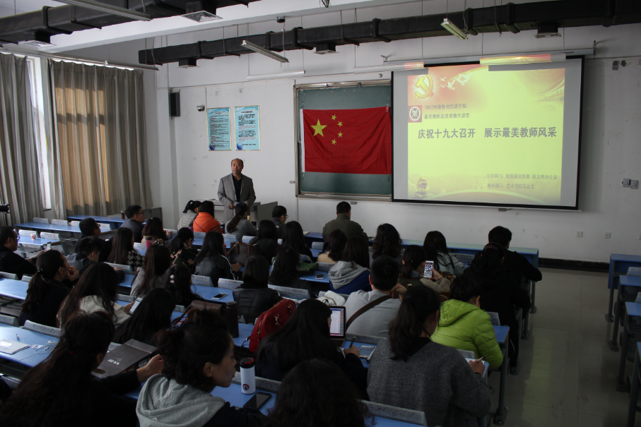 为进一步弘扬立德树人、爱岗敬业、为人师表、严谨笃学的高尚师德,营造尊师重教的浓厚氛围,发挥学校“最美教师”的示范引领作用,用身边的先进典型激励鼓舞和教育身边人,为庆祝党的十九大胜利召开营造良好的宣传舆论氛围,根据学校庆祝党的十九大召开总体宣传活动安排要求,pg电子官方网站于11月2日下午,在龙子湖校区1号教学楼304举行了“庆祝十九大召开 展示最美教师风采”--“最美教师”走进“道德讲堂”活动。会议活动由院党总支书记王在钦主持。