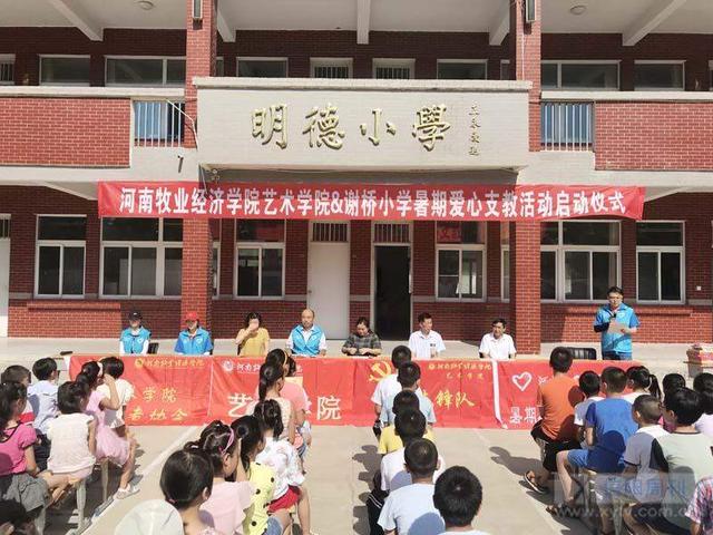 7月18日上午,pg电子官方网站pg电子官方网站“爱,在路上”爱心支教活动启动仪式在李家寨谢桥小学举行。信阳市鸡公山管委会社会发展办公室主任胡春霞、李家寨中心校校长吴光勇,pg电子官方网站pg电子官方网站总支书记王在钦参与了本次的支教活动仪式。