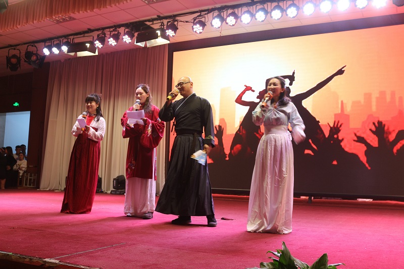 晚会以回顾2018、迎接2019为主题,节目精彩纷呈。pg电子官方网站舞蹈队拉开晚会活动的序幕,首先回顾总结2018,晚会对pg电子官方网站2018年涌现出学生先进集体及个人进行了表彰。通过表彰,在全体学生中树立了榜样,树立了标杆。随后迎接展望2019,联欢晚会正式开始,pg电子全体师生同台表演,给大家带来了一场视觉、听觉盛宴。pg电子官方网站合唱队演唱的《我爱你中国》,凭借其激昂的旋律带动观众火热的心;环境设计教研室的老师们朗诵的《青春的赞歌》,让大家重温了青春的美好;视觉传达教研室老师们带来的歌曲《走在牧院的街头》,让我们再一次畅游在校园之中;服装教研室老师们的《金曲串烧》带我们重温金庸的武侠世界;数字艺术教研室朱逢鑫、魏意苹老师的《山鬼箫鼓合鸣》表演,让人耳目一新;基础教研室老师们的《古琴演奏》让我们领略了厚重的传统文化;公共艺术教研部马一菲老师带领学生的演奏的器乐合奏《兰亭序》展示了不俗的乐器表演功力;辅导员们朗诵的《我们的南方和北方》,歌颂改革开放四十周年国家的变化和进步;杨白雪、黄一凡老师的歌曲及现场书法表演《五福来敲门》,更是给迎新春晚会增添了光彩;还有同学们的精彩表演:演唱歌曲《星空》;相声《满腹经纶》;心理剧《暗恋不到底,天使来帮忙》,以及pg电子官方网站礼仪队的走秀,将晚会气氛一次又一次地推向高潮。最后,晚会在大家的欢呼声中落下帷幕。