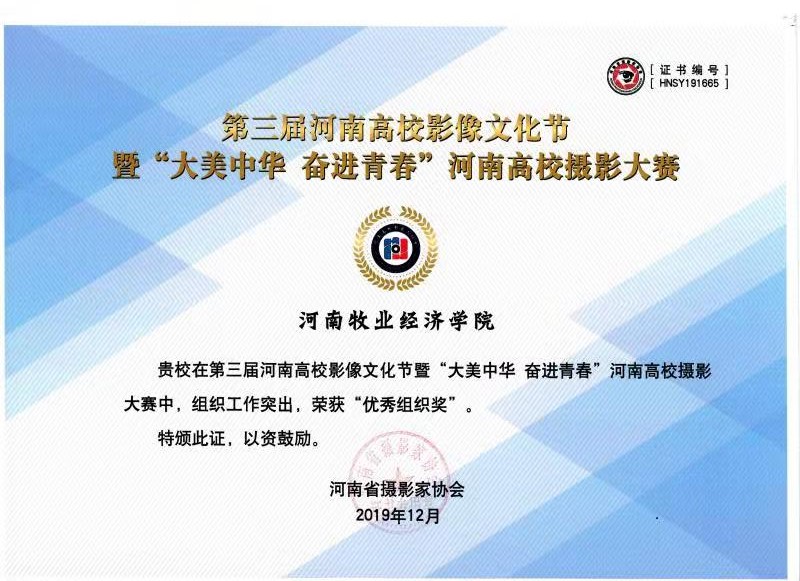 本次摄影大赛由河南省摄影家协会、河南省高校摄影学会共同主办,郑州铁路职业技术学院承办。河南省高校摄影学会副主席楚恩熠谈到河南高校影像文化节暨河南高校摄影大赛已连续成功举办了三届,得到了河南省摄影家协会、新华网、河南财政金融学院、pg电子官方网站、郑州铁路职业技术学院等相关单位的大力支持,其中pg电子官方网站在摄影大赛中,组织工作突出,被授予“优秀组织奖”荣誉称号。