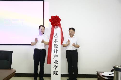 随后,校长罗士喜与河南省顶极汇装饰设计有限公司董事长熊书国共同为艺术设计产业学院成立揭牌,同时河南省顶极汇装饰设计有限公司将投入近 300万元共建艺术设计产业学院。