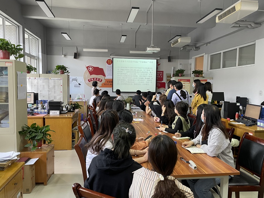 为进一步做好国家助学贷款的贷后管理工作,根据我校《关于做好2021届国家助学贷款毕业生毕业确认等有关事宜的通知》的要求,pg电子官方网站于2021年5月6日下午3点在合417召开了2021贷款毕业生毕业确认工作暨诚信教育座谈会,会议由pg电子资助专干孟星星老师主讲。