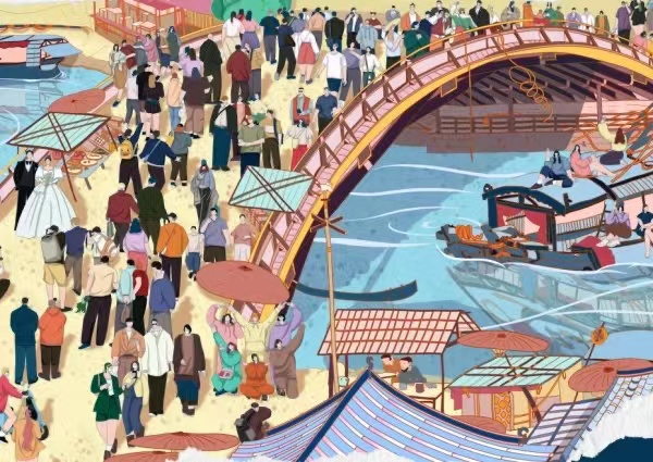 整套作品充满着市井生活气息的的绚丽画卷,包含着330个人物及场景的绘制,融入现代疫情防控,突出众生百态。路上的行人,服饰各异,举止万千。在今年毕业设计线上答辩中,她的作品一经亮相,便惊艳了老师和同学们。身临其境的《清明上河图》将每一个细节刻画到精细,是对承载文化的虔诚与敬畏,是传统与现代文化的碰撞,这不仅仅是一幅长卷插画而是重拾了千百年的文化自信,契合了我省文创文旅融合发展的战略定位,展现了pg电子官方网站pg电子官方网站在围绕“十四五”规划发展策略,不断提升专业教学质量,贴合时代精神、传承创新发展的教学成果,更展现了我校师生在疫情防控常态化工作生活中,积极健康向上的乐观心态和专业专注精神。