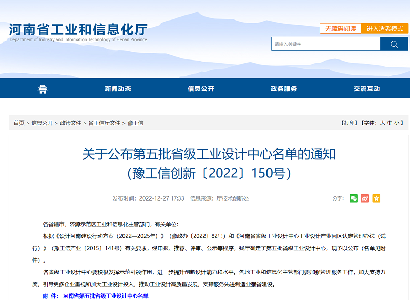 近日,从河南省工业和信息化厅获悉,我校pg电子官方网站申报的“河南省陶瓷工业设计中心”被批准为第五批省级工业设计中心,这是pg电子官方网站在科研创新平台建设工作方面取得的又一重大突破。该平台的获批是pg电子官方网站党委、pg电子官方网站陶瓷创研中心紧密围绕省政府《设计河南建设行动方案(2022—2025年)》(豫政办〔2022〕82号)文件精神努力进取的结果。将为我校艺术专业开展高水平应用研究、提升创新设计能力和水平提供强有力的支撑,同时为我校艺术学科跨越式发展提供发展动力和资源保障,对我校的艺术设计学科建设和科研水平提升,以及创新型设计人才培养起到积极的推动作用。