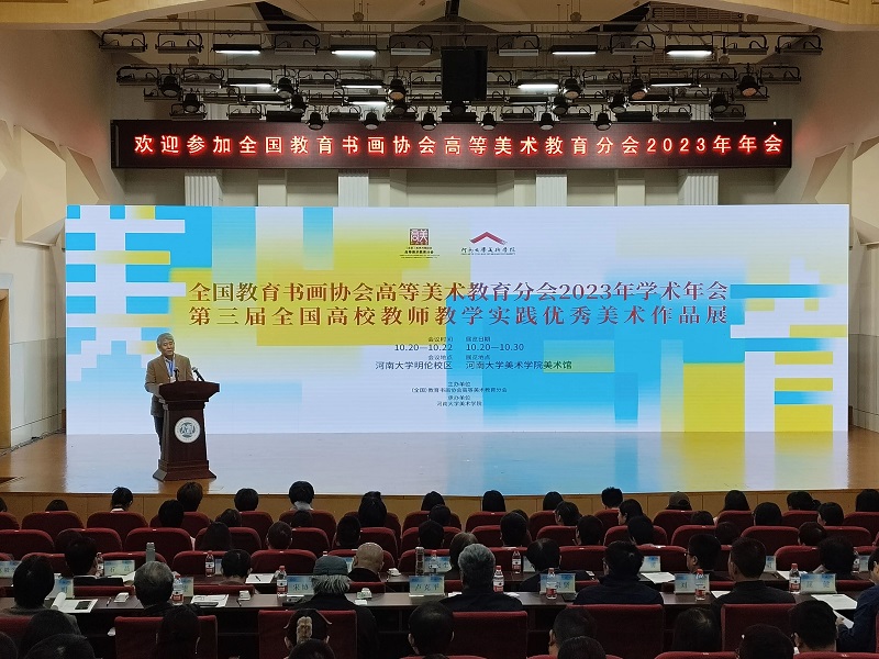 10月21日,由河南大学美术学院承办的(全国)教育书画协会高等美术教育分会2023年学术年会暨第三届全国高校教师教学实践优秀美术作品展,在河南大学明伦校区美术学院开幕。pg电子官方网站(公共艺术教学部)院长张鹏、副院长闫杰、书画教研室主任曲媛媛三人参加了此次年会。