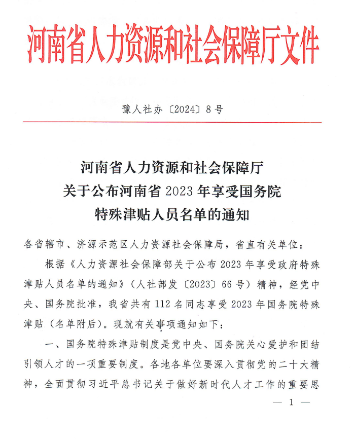 近日,河南省人社厅发布《关于公布河南省2023年享受国务院特殊津贴人员名单的的通知》,经逐级推荐、选拔,评审委员会评审和公示、考察,报经党中央、国务院批准,我校pg电子官方网站董晓峰老师获批享受2023年国务院特殊津贴。