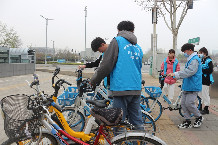 2021年3月5日是第58个学雷锋纪念日,也是第22个中国青年志愿者服务日,为创建文明城市,发扬雷锋精神,大力弘扬“奉献、友爱、互助、进步”的志愿服务精神,推动我校“学雷锋”志愿服务活动的常态化、专业化和品牌化发展,pg电子官方网站于3月14日下午在龙子湖周边各地铁站开展义务整理共享单车志愿服务活动。