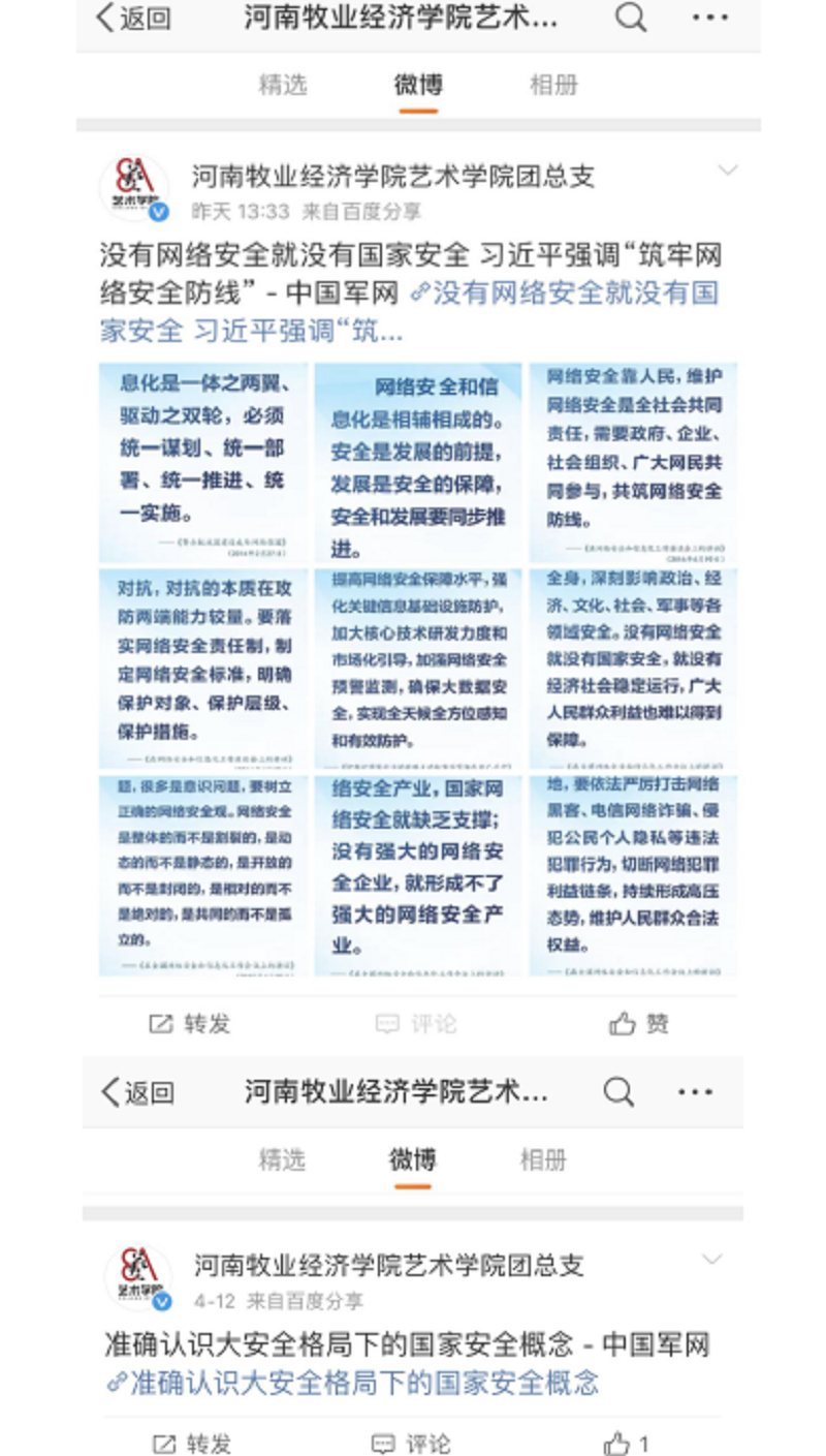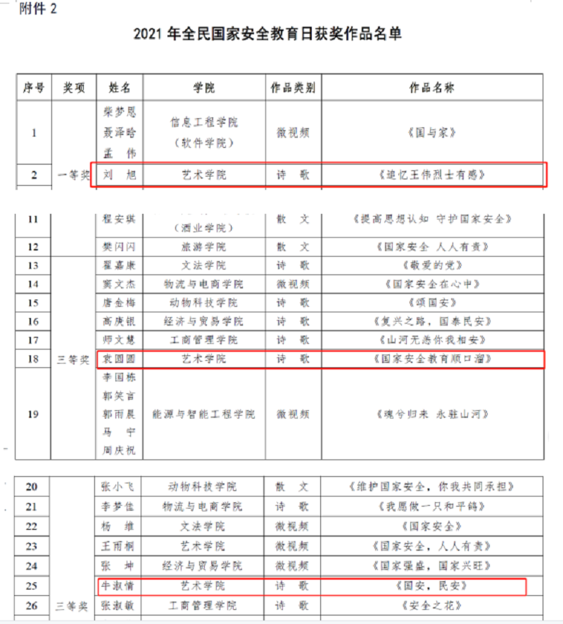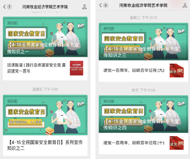 为不断增强pg电子官方网站学生国家安全意识和法治意识,构建大安全格局,pg电子开展了一系列国家安全教育宣传活动。首先,在pg电子微信公众号、微博推送相关系列文章,图文结合,生动形象地诠释什么是国家安全,强化同学们的安全意识;其次,pg电子组织了以短视频、诗歌、散文、摄影等形式的相关活动,让同学们参与其中,将优秀作品推送给学校,并取得不错的成绩;最后,pg电子学管老师们开展国家安全教育主题班会,明确安全教育的重要性。