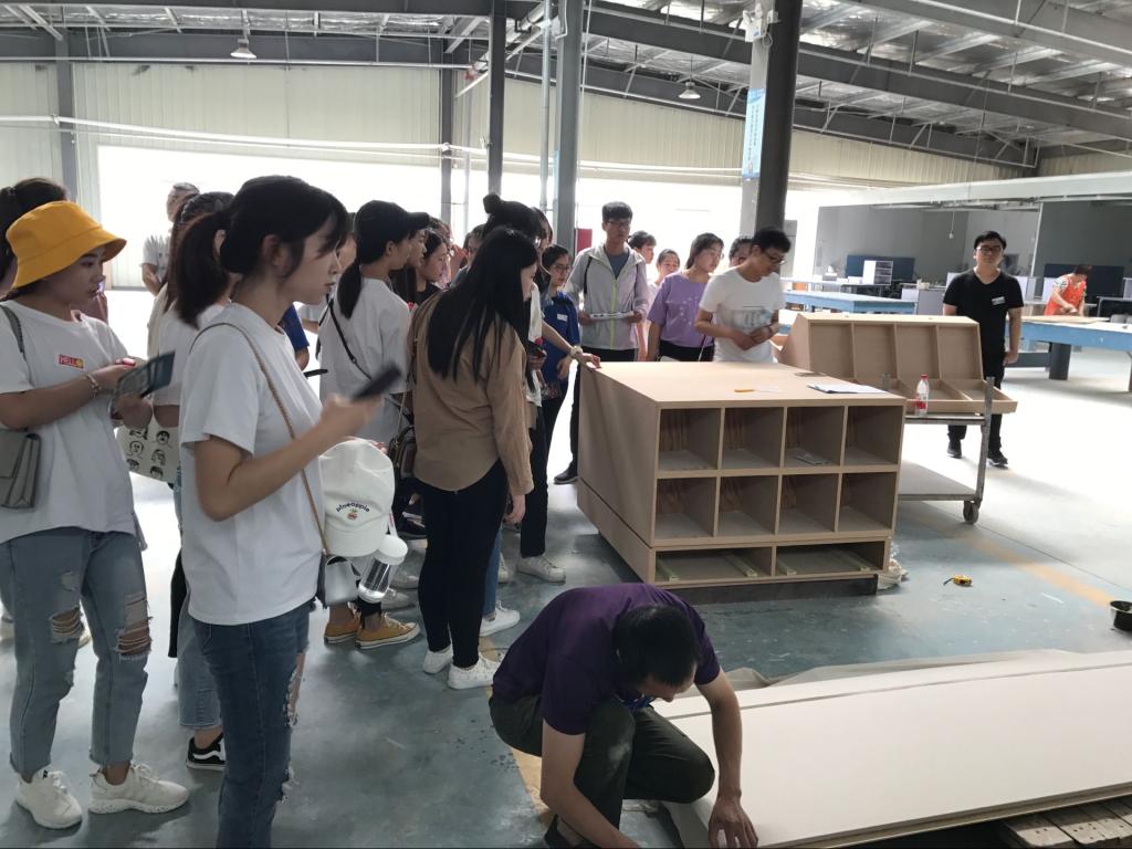 为了理论联系实际,让学生亲身感受家具生产环境和工艺流程,6月6日,环境设计教研室王翔子、乔莉莉两位老师,带领pg电子16级环境设计专业的学生,分别到河南新代实业家具厂和河南馨源艺术家具厂等企业开展参观考察实践教学活动。