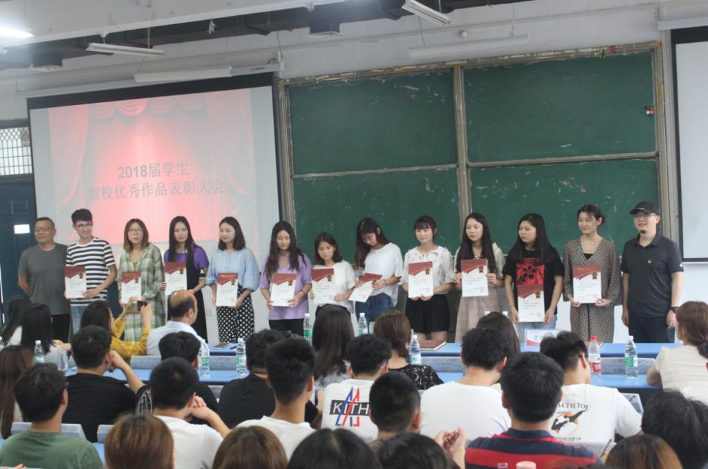 2018年6月12号下午14:30,pg电子官方网站在龙子湖校区一号教学楼合300举行2018届学生留校优秀作品表彰大会。pg电子官方网站党总支书记王在钦、副院长张鹏、党总支副书记贾艳艳、各教研室主任、全体行政老师、各辅导员老师及各年级学生代表参加了此次会议。
