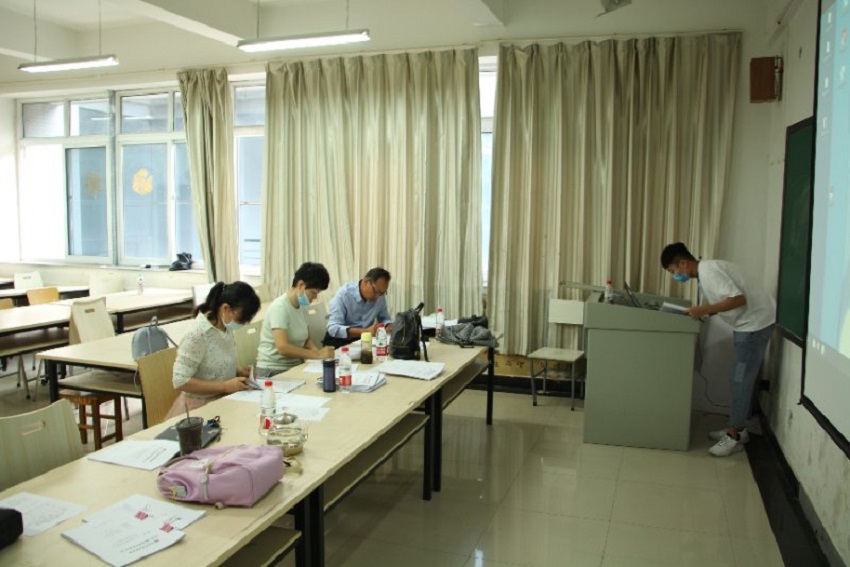 根据学校防控工作的要求,参加答辩的全体教师和学生进入答辩场地前均进行了体温测量,未发现异常;各答辩组秘书组织参加本答辩组学生间隔而座,前后左右间距不少于1米。10日上午8点30分,4组答辩同时开始。