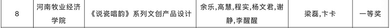 在接到大赛通知后pg电子官方网站积极响应,组织学生组建团队参赛,视觉传达设计专业文创团队顺利立项,与宝丰县政府合作开发“《说瓷唱韵》宝丰非遗系列文创设计”,比赛过程中多次与宝丰县政府沟通交流,实地走访调研,了解实际需求,设计方案也到宝丰县政府和组委会的肯定,中期作品受邀多次参加各类路演和展览并顺利进入决赛最终获得“黄河之礼”非遗文创设计赛道一等奖。