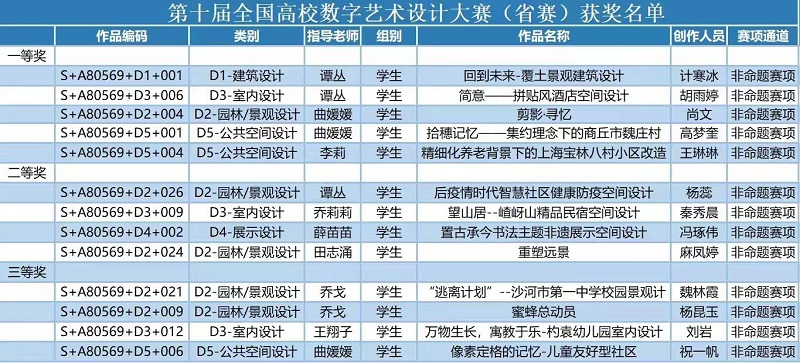 近日,第十届全国高校数字艺术设计大赛(未来设计师NCDA大赛)获奖名单公布,我校pg电子官方网站环境设计专业师生在此次大赛中经过多轮角逐,表现优异,喜获佳绩。参赛作品共获得16项大奖,其中国家级一等奖1项、二等奖1项、三等奖1项;省级一等奖5项、二等奖4项、三等奖4项。