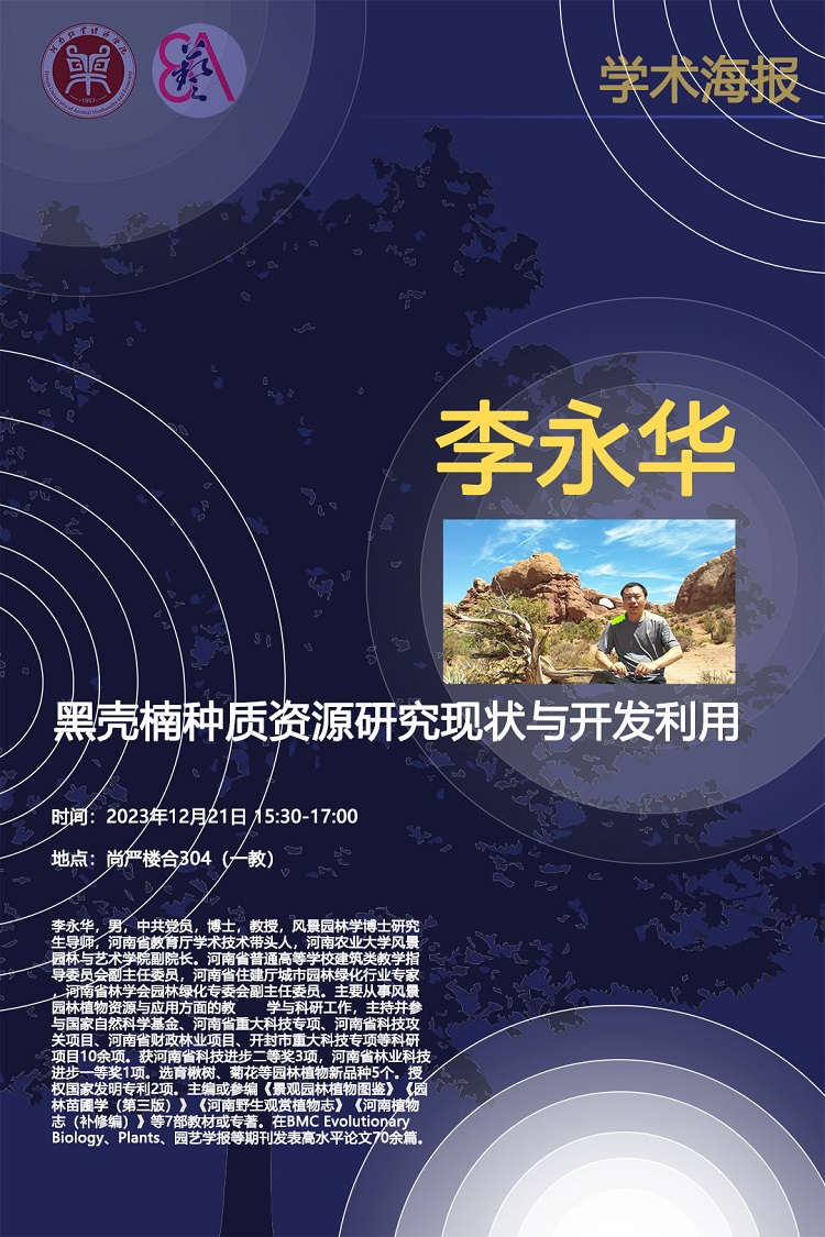 2023年12月21日下午,河南农业大学风景园林与pg电子官方网站副院长、博士研究生导师、河南省教育厅学术技术带头人、河南普通高校建筑类教学指导委员会副主任委员李永华教授在龙子湖校区1号教学楼合304教室一场题为“黑壳楠种质资源研究现状与开发利用”的学术报告。报告由pg电子官方网站院长张鹏主持,全体教师及园林专业全体学生参加。