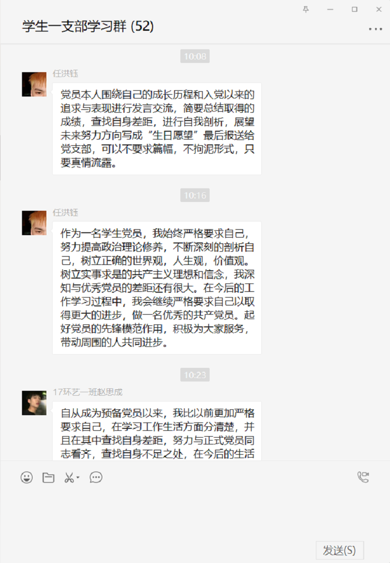 第四项是大家相互讨论,同学们表示今天的主题党日活动使大家更加坚定初心,将继续学习和发扬中国共产党的奉献精神,以更严的标准、更高的要求、更好的状态,确保在新征程中树标杆、走前列、作表率,为祖国建设贡献力量。