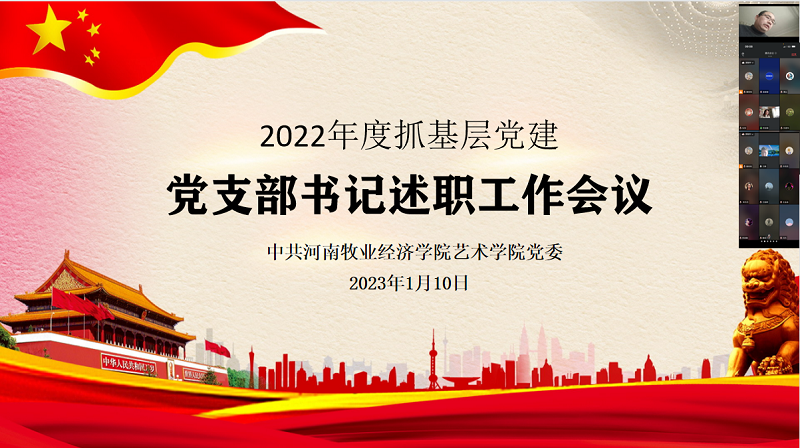 为深入学习贯彻习近平新时代中国特色社会主义思想和党的二十大精神,着力发挥党支部战斗堡垒和党员先锋模范作用,落实基层党建工作责任,pg电子官方网站党委1月10上午在腾讯会议平台上召开了2022年度基层党支部书记述党建工作述职测评会,学院各支部书记及全体党员老师参加会议。会议由学院党委书记王国辉主持。