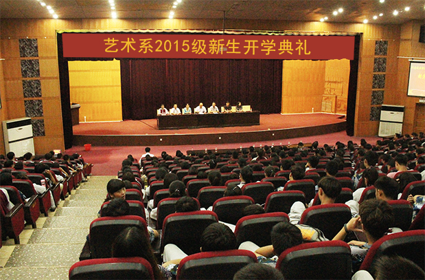 9月25日下午2点,pg电子官方网站艺术系2015级新生开学典礼在英才校区学术报告厅隆重举行。开学典礼由艺术系党务负责人王在钦主持,艺术系主任田秀群携系全体领导班子成员共同出席此次开学典礼。出席此次活动的还有各教研室主任、全体辅导员、教师代表、老生代表和全体15级新生。