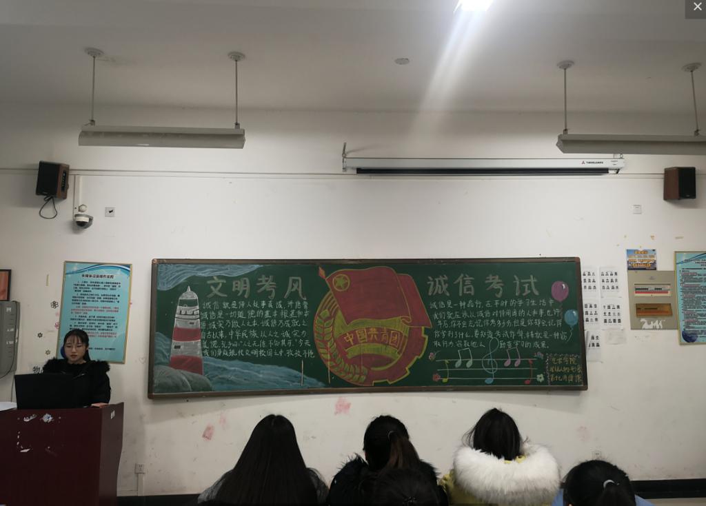 2018年12月27日下午,pg电子官方网站pg电子官方网站在龙子湖校区二号教学楼举行了以“文明考风,诚信考试”为主题的团课班会,本次团课,由大一全体班级参加!
