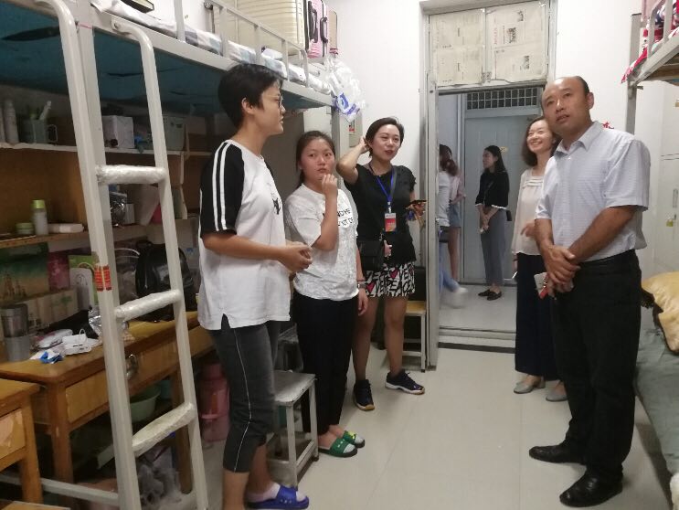 9月9日17时,pg电子官方网站党总支书记王在钦、pg电子官方网站主任田秀群、党总支副书记贾艳艳、团总支书记韩飞、18级新生辅导员李巍然、王霜、李好敏以及助理班主任等一行人来到新生宿舍,看望新生,王书记、田院长代表院系领导老师对新生的到来致以问候,贾书记也不忘嘱咐大家用电用水安全、拒绝推销、防止电信诈骗等相关安全注意须知。