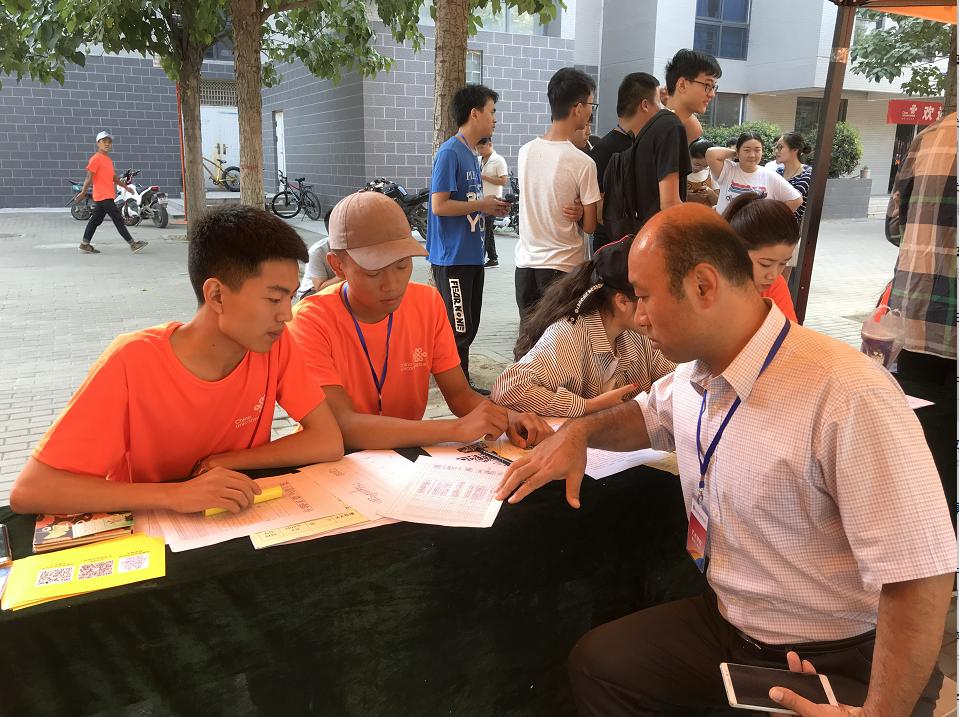 随着金色的阳光洒满整个校园,pg电子官方网站青年志愿者们开始走上迎新的岗位,用最饱满的热情、最真挚的服务等待着2018级学弟学妹。党员先锋队的成员们负责在学校南门、北门、西门迎接新生的志愿者将pg电子官方网站新生送至pg电子官方网站迎新大本营。在这里,34名代理班主任按照班级分工,逐一核对报道材料,在进行宿舍分配,接着由班级志愿者将新生送至宿舍办理入宿手续,完成整个报道程序。随后新生持录取通知书和新生告知书来到各班级报到处,填写住宿卡,登记个人信息上缴项材料,最后由志愿者帮助新生搬运行李,送至宿舍。