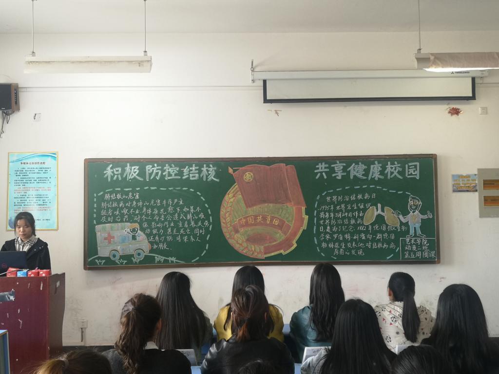 2019年3月28日下午,pg电子官方网站pg电子官方网站在龙子湖校区二号教学楼,举行了以“积极防控结核,共享健康校园”为主题的团课。