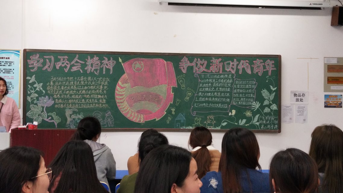 吹面不寒杨柳风,阳春三月,在这两会召开之际,2018年3月15日下午 2:30---4:20,pg电子官方网站在龙子湖校区2号教学楼举行了以“学习两会精神 ,争做新时代青年”为主题的团课班会。本次团课,由大一全体班级参加。