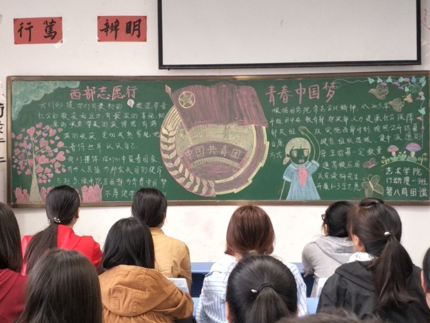团课上,各班同学在团支书的带领下对西部计划有了具体的认识,了解了国家对西部计划的重视与期望,学习到了每位志愿者的美好品质。同学们积极发言,表达了自己对志愿服务西部计划的新感触与新理解。课堂现场气氛良好,掌声不断,同学们志愿服务西部计划和为中华民族伟大复兴奉献青春的热情油然而生。