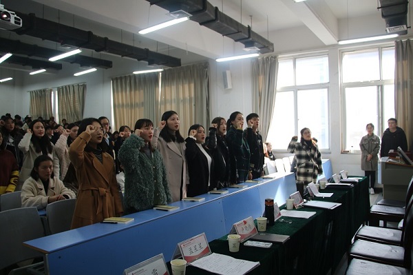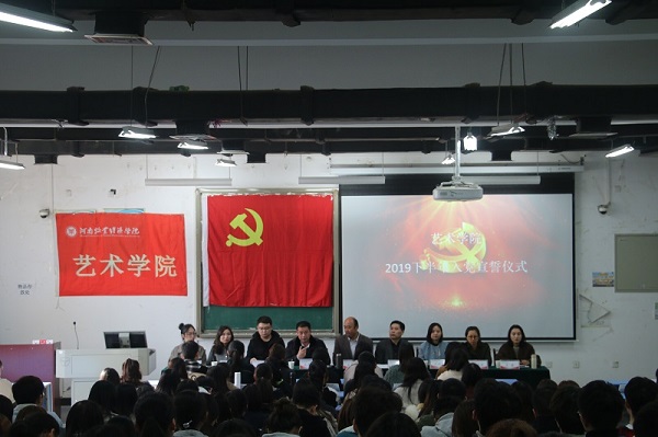 2019年11月21日,pg电子官方网站pg电子官方网站在龙子湖校区隆重举行了pg电子官方网站2019年第二批新党员宣誓仪式。党委书记王在钦、正处级组织员杨柳青处长、党委副书记王友峰、学生第一党支部书记韩飞、组织委员云畅、宣传委员王梦如;学生第二党支部书记卢晓靖、组织委员王霜、宣传委员孟星星出席本次仪式。同时观摩本次宣誓仪式的还有全院所有的学生正式党员、预备党员、本期的37名发展对象和本期125名积极分子。本次仪式由王友峰副书记主持。