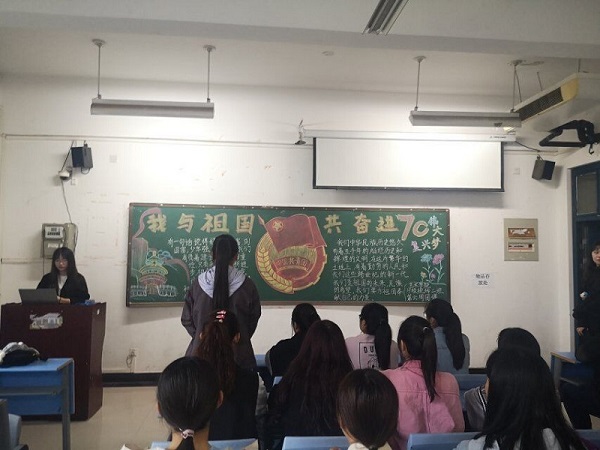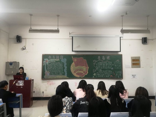 2019年10月10日下午,pg电子官方网站pg电子官方网站在龙子湖校区二号教学楼,举行了以“我与祖国共奋进”为主题的团课。