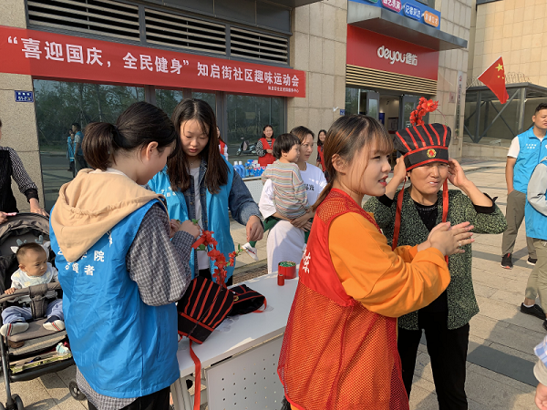 2019年9月21日,为庆祝中华人民共和国成立70周年,提高社区老年居民的身体素质和健康水平,展示志愿者们热情的精神风貌,龙子湖街道办事处知启街社区党支部与pg电子官方网站pg电子官方网站志愿者协会联合在知启街社区为老人们共同举办了一场“喜迎国庆,全民健身运动会”。