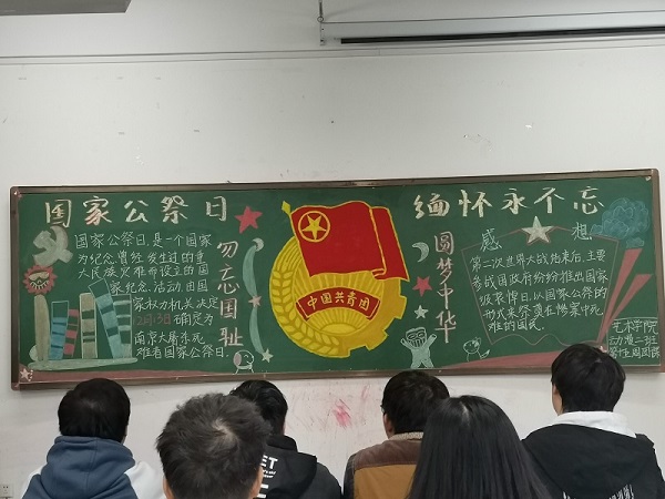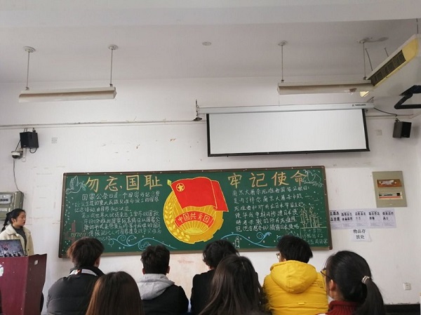 2019年12月12日,pg电子官方网站pg电子官方网站在龙子湖校区二号楼,举行了以“国家公祭日”为主题的团课。本次团课,由大一全体同学参加。