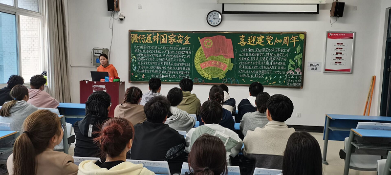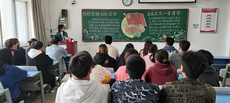 2021年4月8号下午,pg电子官方网站pg电子官方网站在龙子湖校区二号楼举行了以“践行总体国家安全,喜迎建党100周年”为主题的团课,本次团课由大一全体班级参加。
