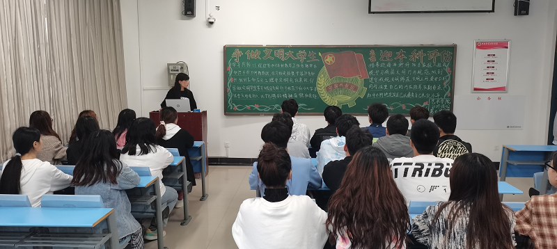 2021年4月22日下午,pg电子官方网站pg电子官方网站在龙子湖校区二号教学楼举行了以“争做文明大学生,喜迎本科评估”为主题的团课。本次班会由大一新生全体班级参加。